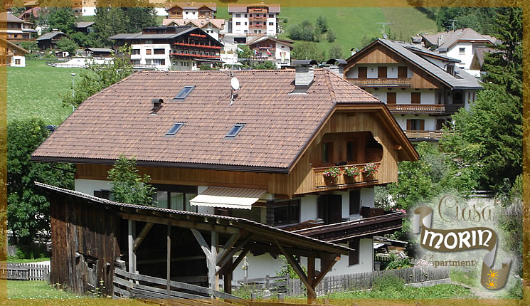 A Ciasa Morin vi attendono 2 accoglienti e luminosi appartamenti da 2 a 4 persone. A pianoterra l'appartamento dispone di una camera matrimoniale ed una doppia con nuovi pavimenti, nuovo bagno con doccia, WC, bidet e fon, soggiorno/cucina con nuovo TV SAT con canali Mediaset, WiFi gratuito, piano cottura a gas, lavastoviglie, frigorifero, macchina da caffé americano e nuovo microonde, giardino soleggiato, parcheggio all'aperto e deposito sci. Al primo piano l'appartamento dispone di una camera tripla, una camera singola, bagno con doccia, WC, bidet e fon, ambiente soggiorno/cucina con piano cottura in ceramica, lavastoviglie e microonde, divano, TV SAT con canali Mediaset, WiFi gratuito, 2 balconi soleggiati e parcheggio all'aperto. In dotazione troverete la biancheria da letto, asciugamani e teli da bagno, tovaglie, strofinacci e stoviglieria. Inoltre potrete usufruire delle tessere Holiday Card per l'uso gratuito dei mezzi pubblici in Alto Adige.