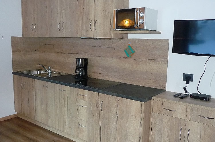 Gli appartamenti sono accoglienti e luminosi e dispongono di 2 camere, bagno con doccia, WC, bidet e fon, soggiorno o soggiorno/cucina con TV SAT con canali Mediaset, WiFi gratuito cucina con nuovo piano cottura a gas, lavastoviglie e microonde, giardino o balcone soleggiato, parcheggio all'aperto e deposito sci. La biancheria da letto e da bagno, tovaglieria e stoviglieria vengono fornite.