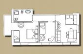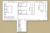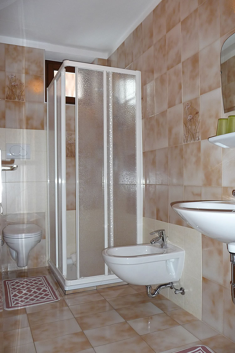 L'appartamento da 4 persone al primo piano dispone di una camera tripla, una camera singola, bagno con doccia, WC, bidet e fon, nuovo ambiente cucina/soggiorno con divano, piano cottura in ceramica elettrico, frigorifero, lavastoviglie e microonde e soggiorno con TV SAT con canali Mediaset, 2 nuovi balconi soleggiati e parcheggio all'aperto. |